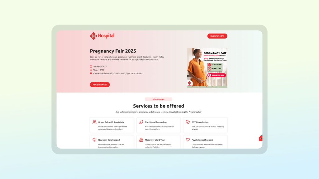 AAR Hospital engaged us to strengthen their digital presence and support community engagement through a clearer, more accessible website and targeted campaign support for the AAR Pregnancy Fair.